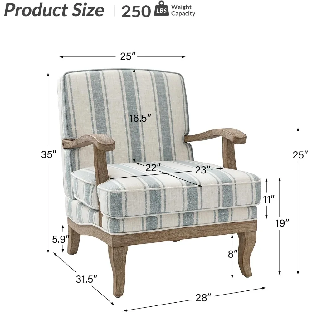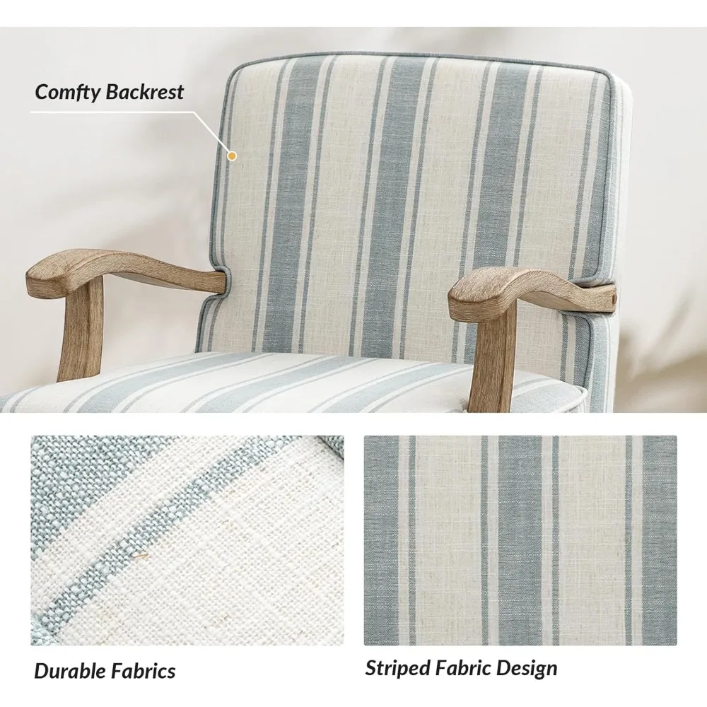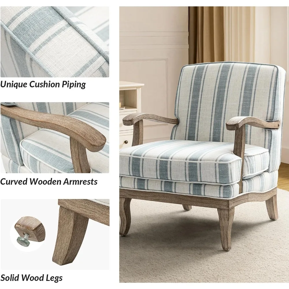 - COMFORTABLE AND COZY: Since this accent chair is handcrafted with cushion piping, combined with natural wooden armrests and legs. Equipped with the romantic striped armchair to refresh your eyes. The cushion can be moved, and the soft contact surface conforms to the comfort of the human body.